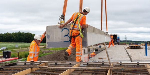 Afgelopen weken is er ruim 200 m3 beton gestort bij de bouw van het viaduct bij de N391 in Emmen. Daarmee is een groot deel van de landhoofden en de pijlers waar de liggers op komen te rusten bijna klaar.